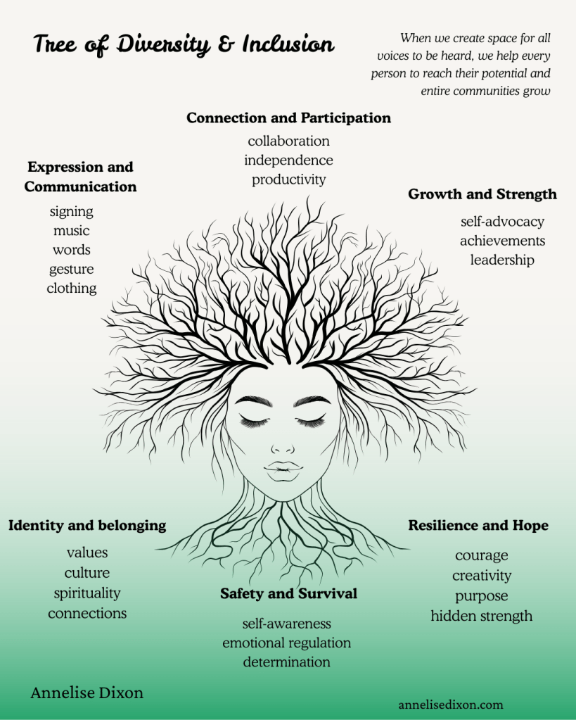 Intersectionality reminds us that no one carries a single story or simple identity. Each person’s identity is a tapestry woven from multiple, interconnected threads, including culture, language, gender, sexuality, disability, experiences of trauma, socio-economic background, mental health, learning preferences, passions, and strengths.
